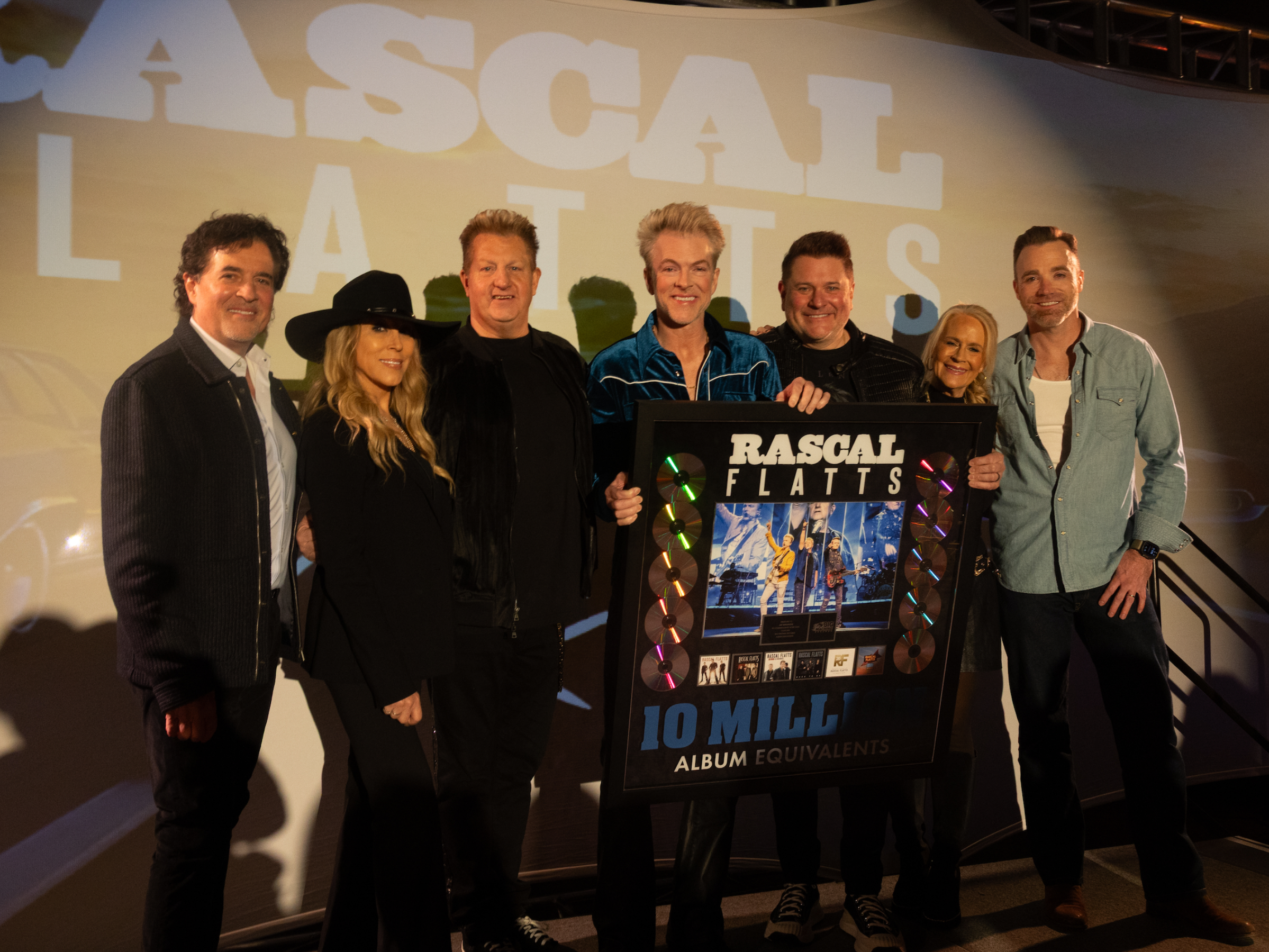 To honor their achievements in a storied 26-year career, Big Machine Label Group founder, chairman and CEO Scott Borchetta presented Rascal Flatts with a plaque to commemorate over 10 million album equivalents. Continuing their mark on country music history, three of the trio’s songs have earned new RIAA certifications, with “I Won’t Let Go” and “I Like The Sound Of That” now certified 2X PLATINUM, and “Yours If You Want It” is certified PLATINUM.